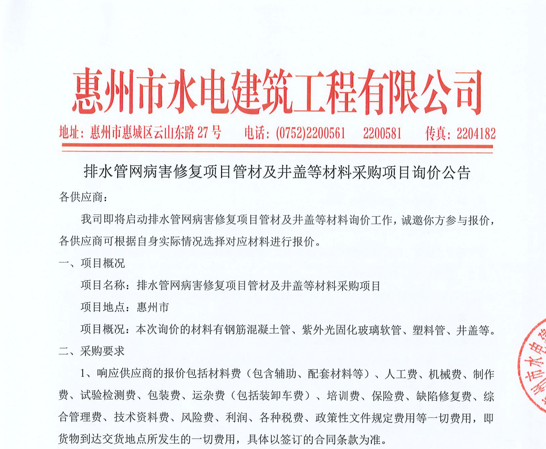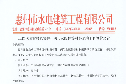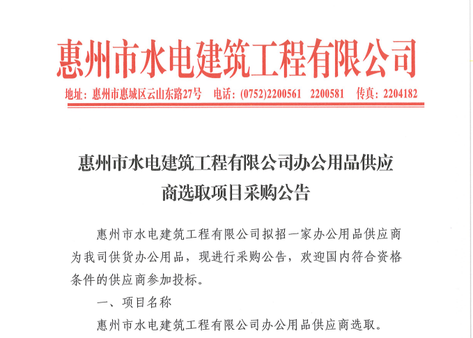 惠州市水電建筑工程有限公司辦公用品供應(yīng)商選取項(xiàng)目采購公告……